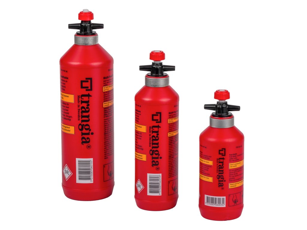Láhev pro bezpečný převoz paliva a plnění hořáku.